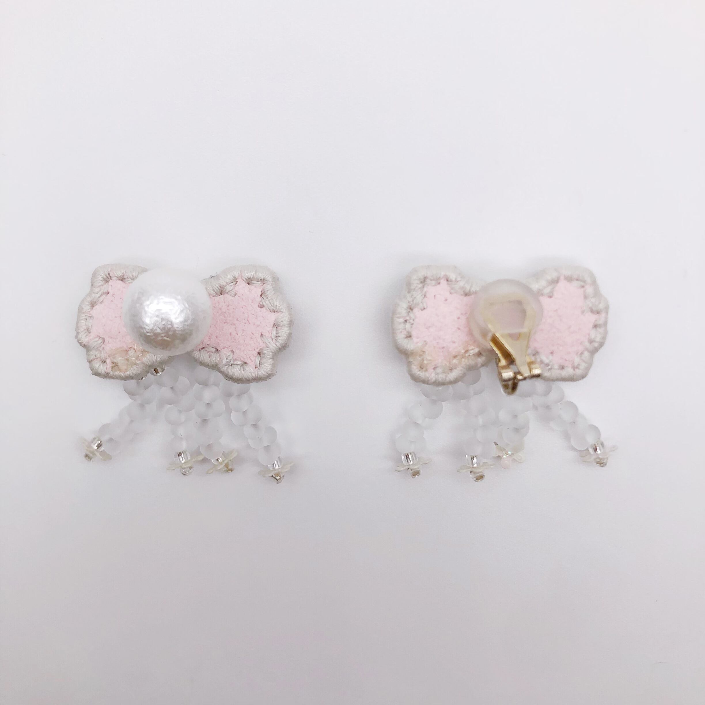 素材:ピアス(ステンレス)、キャッチ(PS樹脂、真鍮、シリコン)、イヤリング(真鍮)、刺繡糸、ガラスビーズ