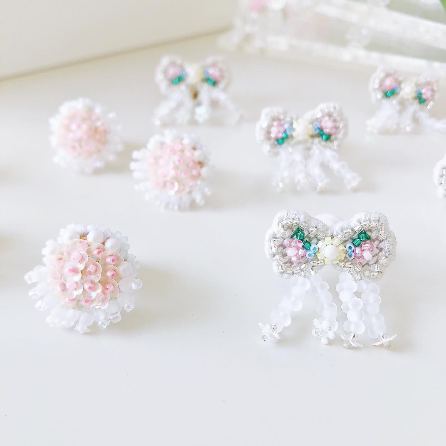 ほんのりと淡い優しい色合いのピアス&イヤリングです