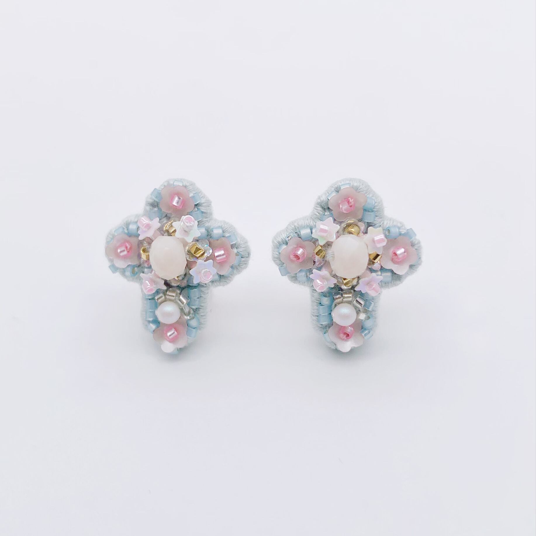 花に囲まれたクロスをイメージしたピアス&イヤリング