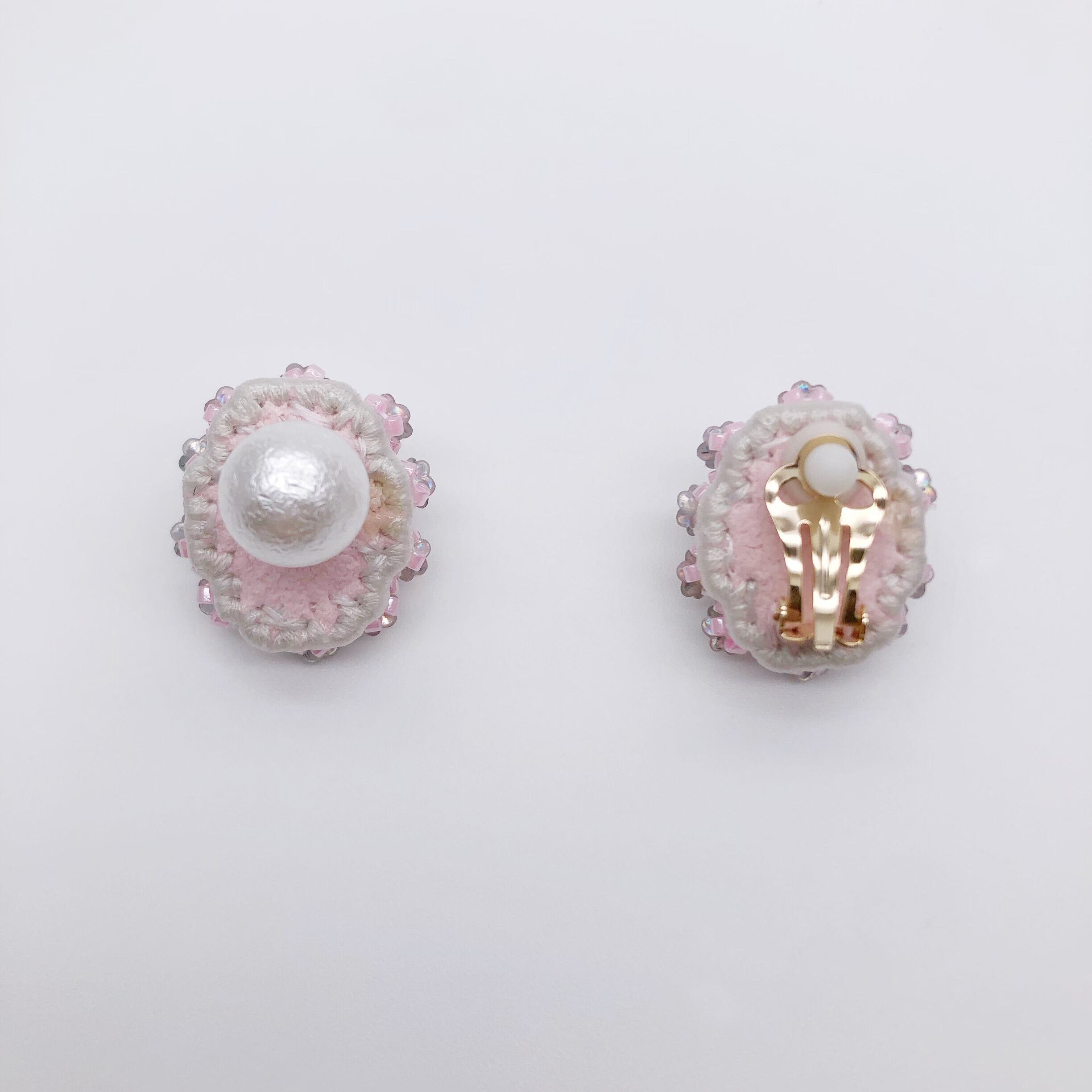 素材:ピアス、イヤリング(真鍮)キャッチ(PS樹脂、真鍮、シリコン)、刺繡糸、ガラスビーズ、スパンコール