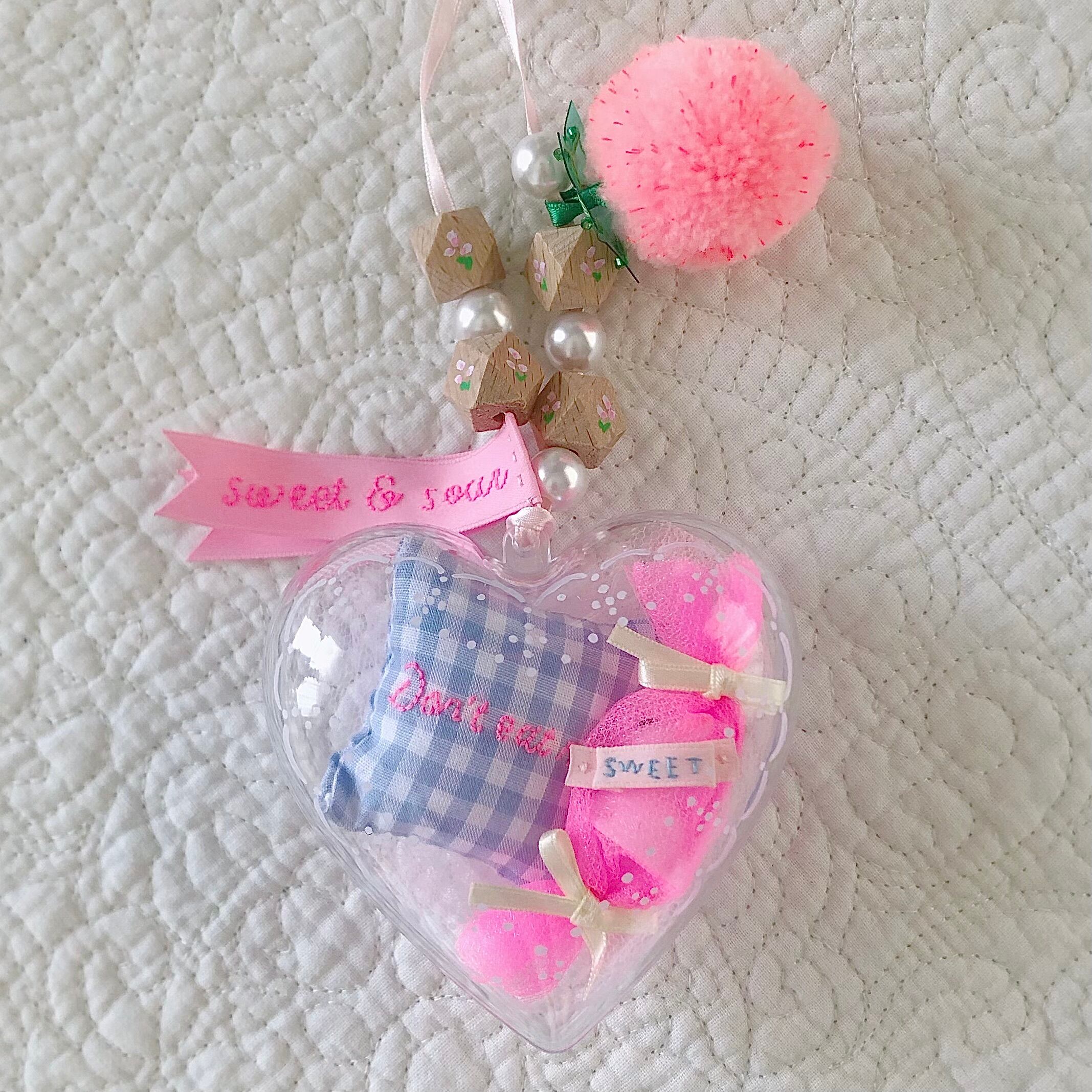 素材:アクリルケース、チュール生地、コットン生地、アクリル綿、リボン、ウッドビーズ、アクリルパール、毛糸、PVC生地、アクリル絵の具、フィギュア